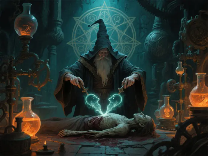 Există însă o regulă veche, pe care niciun alchimist nu îndrăznește să o ignore: niciun suflet nu trebuie lăsat îndelung în două. Partea desprinsă devine tot mai clară, tot mai distinctă, tot mai conștientă că este ceva separat. La început se întoarce de bunăvoie. Mai târziu trebuie chemată. Mult mai târziu trebuie convinsă. Iar dacă trece de limită, nu se mai întoarce deloc.